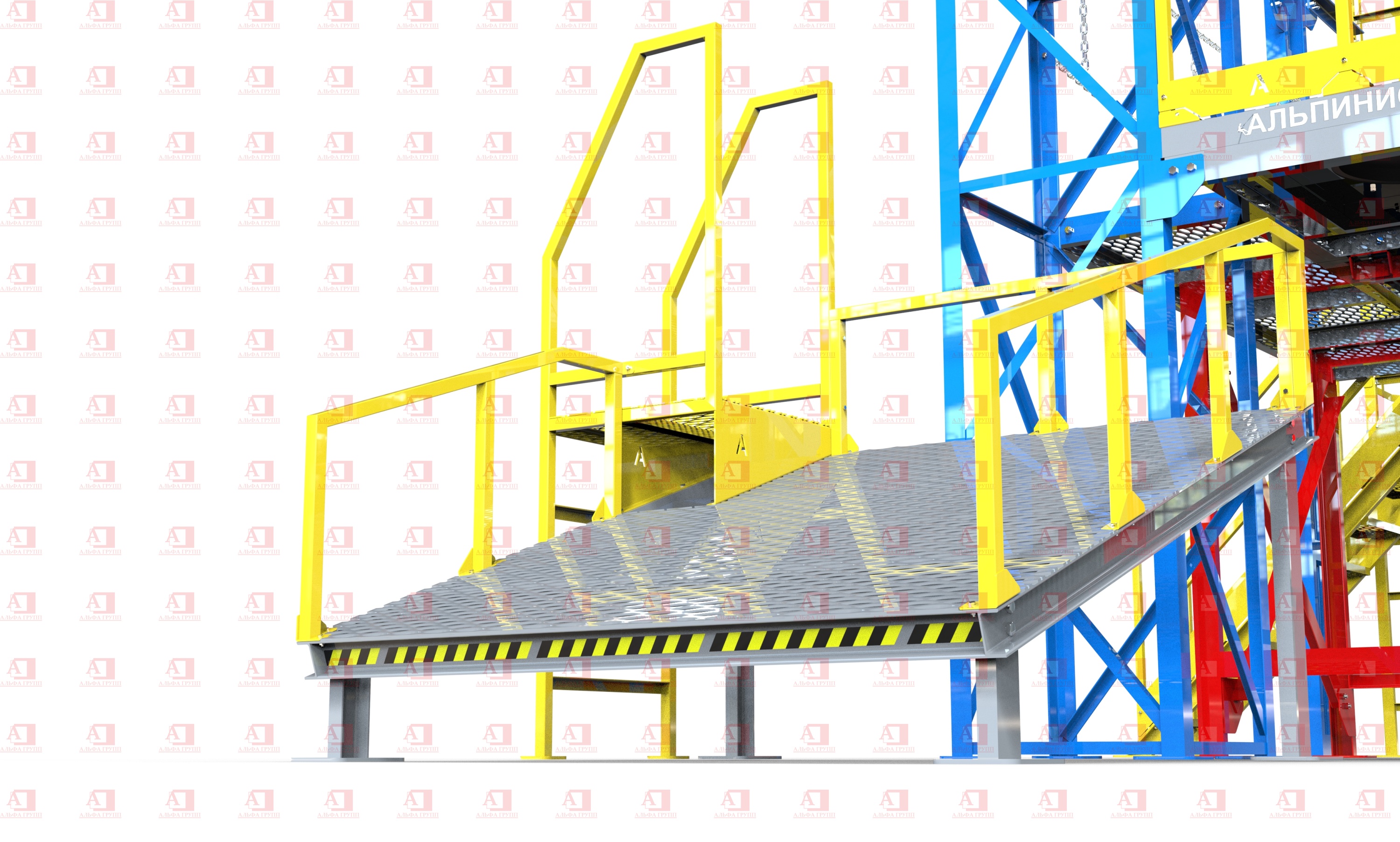 Доступ на рабочую площадку второго уровня осуществляется по стальной маршевой лестнице.